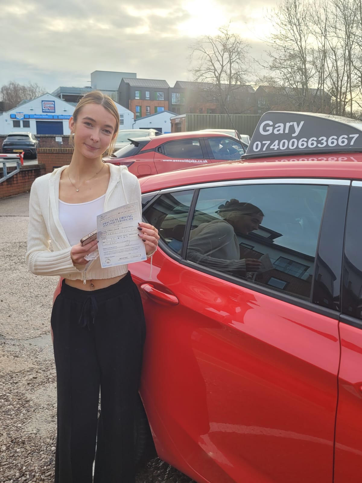I would like to say a massive thanks to Gary for making it possible for me to pass my driving test after just 8 lessons. He makes you feel at ease and his learning style is simple and effective. Cheers Gaz, would recommend you to anyone whatever their ability!